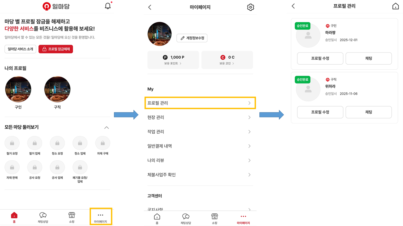 인력 (구직) 작업시간과 작업장소는 어디서 확인하나요?